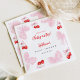 Coquette Cherry Baby Shower napkins. Featuring a delightful cherry theme, elegant red script, and soft watercolor pink bows, this design is perfect for a cutesy cherry celebration.