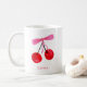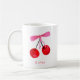 Cute cherry and bow coffee mug. Personalise with your own name, initials or choice of text. Original art from artists own illustrations. Matching items available. Please use the message me button below for help with further customization and special requests. © Zoe Chapman Design