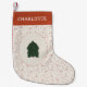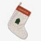Rustic Christmas stocking with hand-drawn branches, berries, and bows. Features a cozy pine tree illustration and a customizable red name area — the perfect personalized addition to your festive holiday decor.