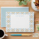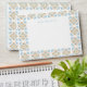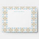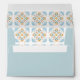 This envelope design has a Mexican tile pattern on the front and inside. Colors include blue, yellow, pink, white and coral.