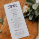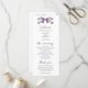 Coquette and rustic wedding program featuring hand drawn illustration of lilac bows and flowers. All the wedding ceremony information and the wedding party's name listed on this program.