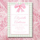 Coquette Pink Bow And Sage Gingham Baby Shower Invitation