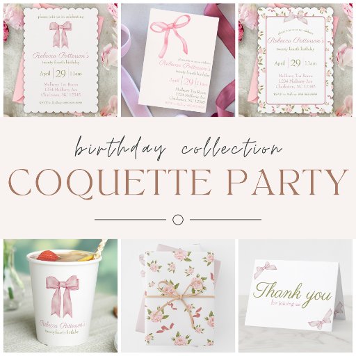 Coquette Feminine Pink Bow Girly Party CollectionDesigned by Amanda Stuff