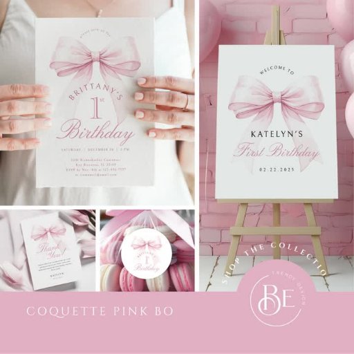Celebrate your little one's special day with the Coquette Pink Bow First Birthday Welcome Sign. This charming design sets the tone for a day filled with joy and wonder, blending modern style with timeless elegance. At its heart is a lovely blush pink bow, symbolizing the gift of precious memories, while graceful typography adds a personal, heartfelt touch.