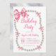 Coquette Pink Bow Pearls Birthday Party Invitation