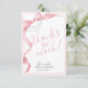 This modern & trendy Coquette aesthetic wedding bridal shower simple double-sided thank you card features a soft watercolor pink ribbon bow with a strings of pearls, cute pink script lettering on the front, and a bows and pearls pattern with transparent area on the inside for bride-to-be's personal message over top on the back side - it's the perfect feminine touch to the bride's special day before the BIG day! Easily personalize the thank you card template wording and make it your own. Scroll above to see the entire matching invitation, stationery, and decor collection! ♥ Custom design requests and questions are always welcome - click the "message" button or email: contact@figandlilyco.com. Design is lovingly created by Fig and Lily Studios, sending blessings and thanks!