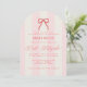 This coquette girl's bat mitzvah invitation features a red/dark pink bow on a cream background with light pink stripes. The reverse side features a cream background with a red bow pattern. Personalize it for your needs. You can find matching products at my store.