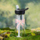 Cute and girly water bottle with pink striped bow with coquette aesthetic, customize with your own name. Matching items available. Original art from artists own illustrations. Please use the message me button below for help with further customization and special requests. © Zoe Chapman Design