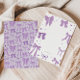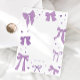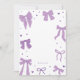 Whimsical stationary note card featuring illustration of a purple bows and hearts.