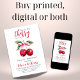 You can download your digital purchase an unlimited amount of times whether it's to print more of the same design, to make edits to the design, or to apply the digital design of your Coquette Red Cherry On Top Pink Bow Bridal Shower Invitation to other products such as party supplies on Zazzle.