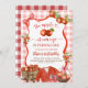 Coquette Red Plaid Bow Apple 1st Birthday Invitation