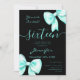 Coquette Turquoise Teal Bow Sweet 16 Party Black Invitation