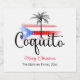 A Coquito Merry Christmas Bottle label with a Puerto Rico Flag and palm tree design. It's a festive bottle label you can use for your coquito holiday party decorations or for holiday gifts.