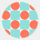 Coral and Aqua Circle Checkerboard Classic Round Sticker