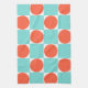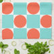 Coral and Aqua Circle Checkerboard Kitchen Towel