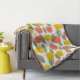 This throw blanket has a Scandinavian design of flower and leaves scattered about in coral, gold, and sage green.