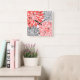Coral and Gray Chrysanthemums Floral Pattern Square Wall Clock