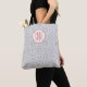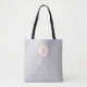 A trendy color palette of dove gray and coral makes this monogrammed tote bag a chic way to carry your groceries or everyday essentials. Design features a hand drawn, modern quatrefoil pattern in pale gray and white, with your monogram tucked into the design in contrasting summery coral. Personalize with your three initial monogram, or simplydelete the sample initials and coral badge element if not personalizing.