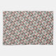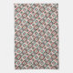 Bright and refreshing kitchen towel with a fun pattern made up of multiple sizes of diamond shapes in coral orange, mint green, black, and white.