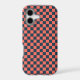 Coral and navy checkerboard pattern iPhone case