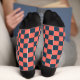 Coral and navy checkerboard pattern socks