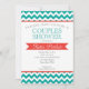Plain white envelopes are included with paper invitations and will come to fit the invitation size you select. If you don’t need the envelopes, you may choose to not receive them by selecting the dropdown below "Envelopes" and choosing "None." If you’d like to have a design on your envelopes, you can browse all of these available envelopes to find the design that complements your Coral And Turquoise Couples Bridal Shower Invite.