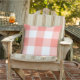Pillow design features a casual gingham plaid / check pattern that is perfect for summertime! Note, you can customize the coral orange / pink background color to coordinate with your outdoor decor.