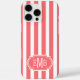 Coral and White Monogrammed Stripes Case-Mate iPhone Case