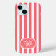 Coral and White Monogrammed Stripes Case-Mate iPhone Case