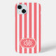 Coral and White Monogrammed Stripes Case-Mate iPhone Case