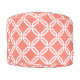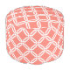 Our preppy chic patterned pouf makes a sunny statement in living spaces, teen bedrooms, dorm rooms and more. Design features a modern geometric lattice pattern composed of interlocked, linked octagon shapes, in a summery color palette of vibrant coral and white.