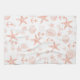 Starfish, shells, coral and anchors patterned towel in white and coral.