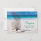 This romantic design features a photo of a white sand beach with the ocean in beautiful shades of blue. Coral is artfully arranged with seashells. Swirls are the inspired by the waves of the water. Personalize this RSVP with the details of your upcoming wedding. These are great for beach theme or destination weddings.