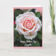 This card features a close-up photo of a single flower, its petals curling in a tight spiral from a coral center out to blush pink and creamy white edges. The soft lighting brings out a velvety texture in each petal, like a gentle embrace between close family members ❤️. In the background, deep green tones fade into a smooth blur with faint, diffused highlights, keeping all attention on the bloom. A fresh green leaf peeks from behind the flower, adding contrast and a quiet, supportive presence, like a friend standing nearby 🌼. A thin pink border frames the image and echoes the flower’s lighter shades without pulling focus. Along the bottom, the message “Happy Mother’s Day Daughter” appears in white, flowing lettering that sits neatly against the darker tones for easy reading. The flower’s layered petals show coral near the center, then blush pink, finishing in pale edges that glow softly against the green backdrop.