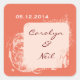 Square stickers with beautifully designed whimsical frame in coral and lighter shades perfect for your wedding.