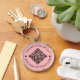 Customizable QR Code keychain, with a coral peach tone background. To generate a new QR code on the design, add your website URL or social media handle in the " personalize this template" feature.
