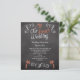 Fresh coral peach and white blackboard effect text with a slate gray background. Celebrate a ceremony by the seaside shore with this cool breezy palm tree and a sketched white chalk look. Nice rustic vintage feel at a beach wedding. Design Copyright © CustomInvitesOnline.com