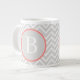 Enjoy your coffee in mass quantities with a Coral Chevron Monogram Jumbo Mug. Mug design features a light gray chevron pattern with a circle emblem outlined in coral. Additional items available with this design as well. Please contact me directly for assistance with personalization.