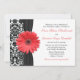 Coral Daisy Black White Damask Wedding Invitation