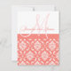 Coral Damask Monogram Names RSVP Reply Cards