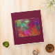Brilliant orange, pink, blue, green, purple, yellow, and turquoise fractal patterns like a riot of coral, with decorative gold framing containing a single smooth gem.