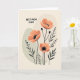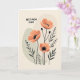 Designed with a calm, modern floral illustration, this card features three large coral-colored blooms with soft rounded petals around spiky dark centers. The flowers rise on slender black stems, surrounded by small dark leaves and tiny berry-like dots that feel like little gestures of care between close hearts ❤️. A pale cream background keeps everything airy, while two muted sage-green organic shapes sit behind the stems like soft shadows in a quiet room. In the upper left corner, the text “BEST MOM EVER” appears in rounded black letters, spaced neatly so it feels friendly and easy to read. The limited palette of coral, black, cream, and sage creates a gentle contrast that suggests warmth and closeness without being loud 🌼. Simplified shapes and smooth outlines give the artwork a tidy, graphic look, like a small bouquet arranged with intention. Three coral blooms stand centered, their black stems crossing slightly above the pale cream canvas with the sage shapes tucked behind them.