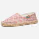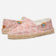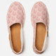 Flowered canvas shoe in coral and a touch of green, and white inside, casual slip on designed handmade shoes.