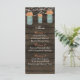 Rustic Barnwood, dangling string lights with coral flowers in a mason jar wedding menu. Matching products also available.