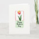 Designed with a serene watercolor look, the card centers on one tall flower that feels like a quiet gift between close hearts ❤️. Its petals shift from rich rosy red near the base to warm golden tones at the tips, as if catching late-afternoon light. A slim deep-green stem rises straight up, with two curved green leaves leaning outward like an easy embrace. The bloom sits inside a slightly uneven coral-red rectangular frame, giving the scene a cozy, intimate boundary. Below the framed flower, a soft-edged pale mint-green wash creates a gentle patch where the message is placed. The lettering appears in flowing dark ink, centered over the mint area, reading as a tender note shared in private 🌼. Wide white space surrounds everything, keeping the flower and the dark text as the main focus. The coral-red border looks lightly sketched, with small imperfections along the corners and edges.