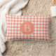 Coral Gingham Pattern Custom Monogram Lumbar Pillow