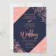 Coral glitter confetti chic navy blue wedding invitation