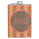 Coral & Gold Herringbone Monogram Flask