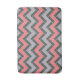 Herringbone designed Bath Mat with a chevron pattern in shades of gray and coral.