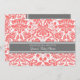 You can pick to download your Coral Grey Damask Custom Baby Shower Invitations from 4 file types: PNG, JPG, Standard PDF, and Print PDF. These 4 file formats have been selected so they cover all your inviting needs. PNG and JPG are great for sending your invitation digitally and PDF and Print PDF are great if you want to print your invitation yourself.